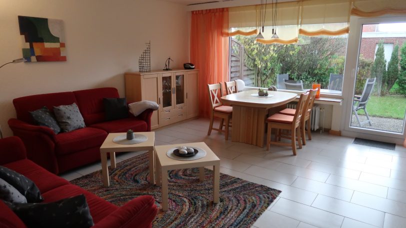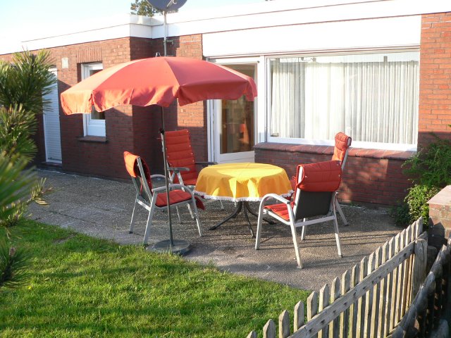 Der Garten ist nach Südwest ausgerichtet und bietet windgeschützten Platz auf der Terrasse zum Entspannen und Erholen an der frischen Luft.