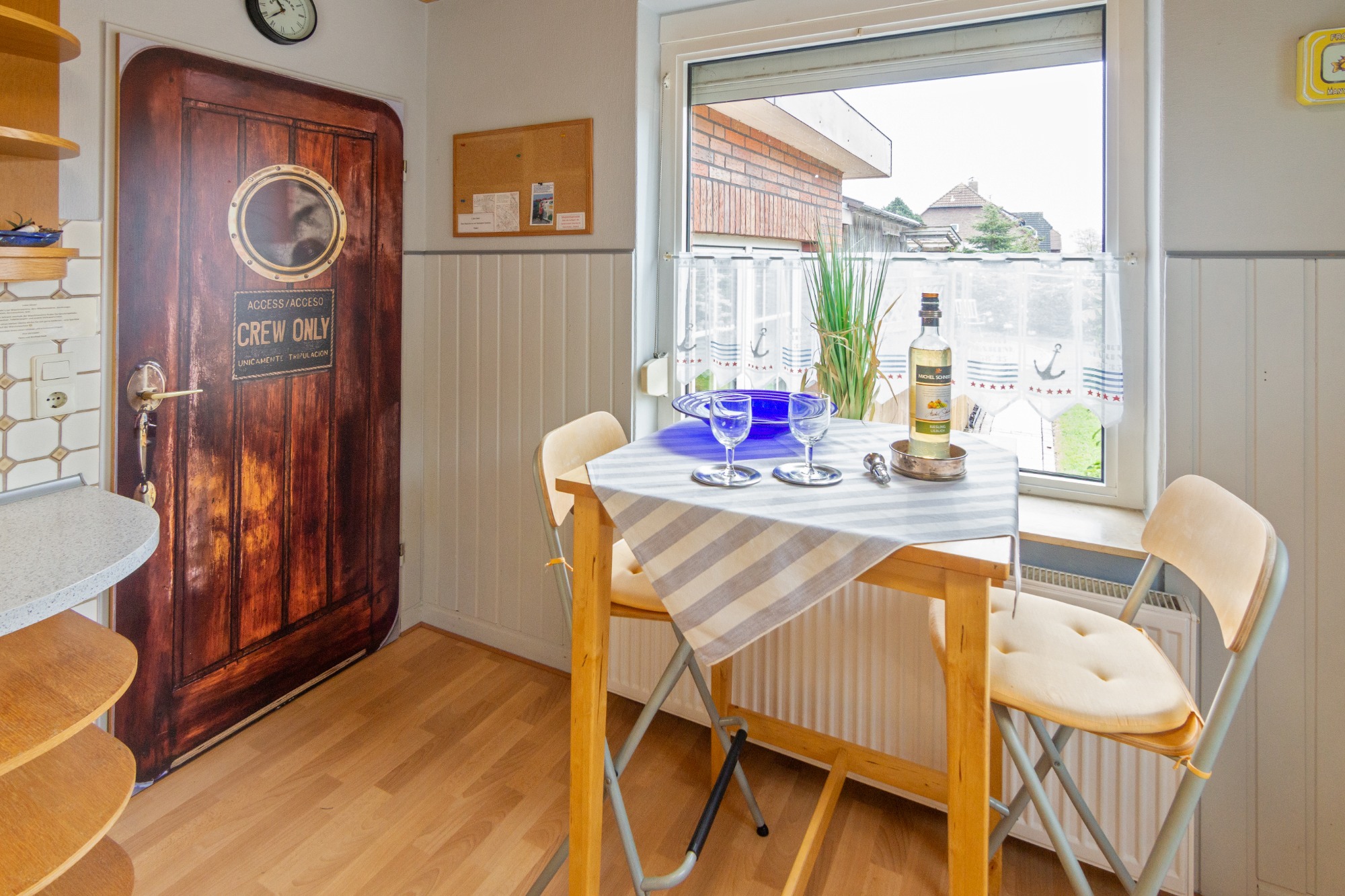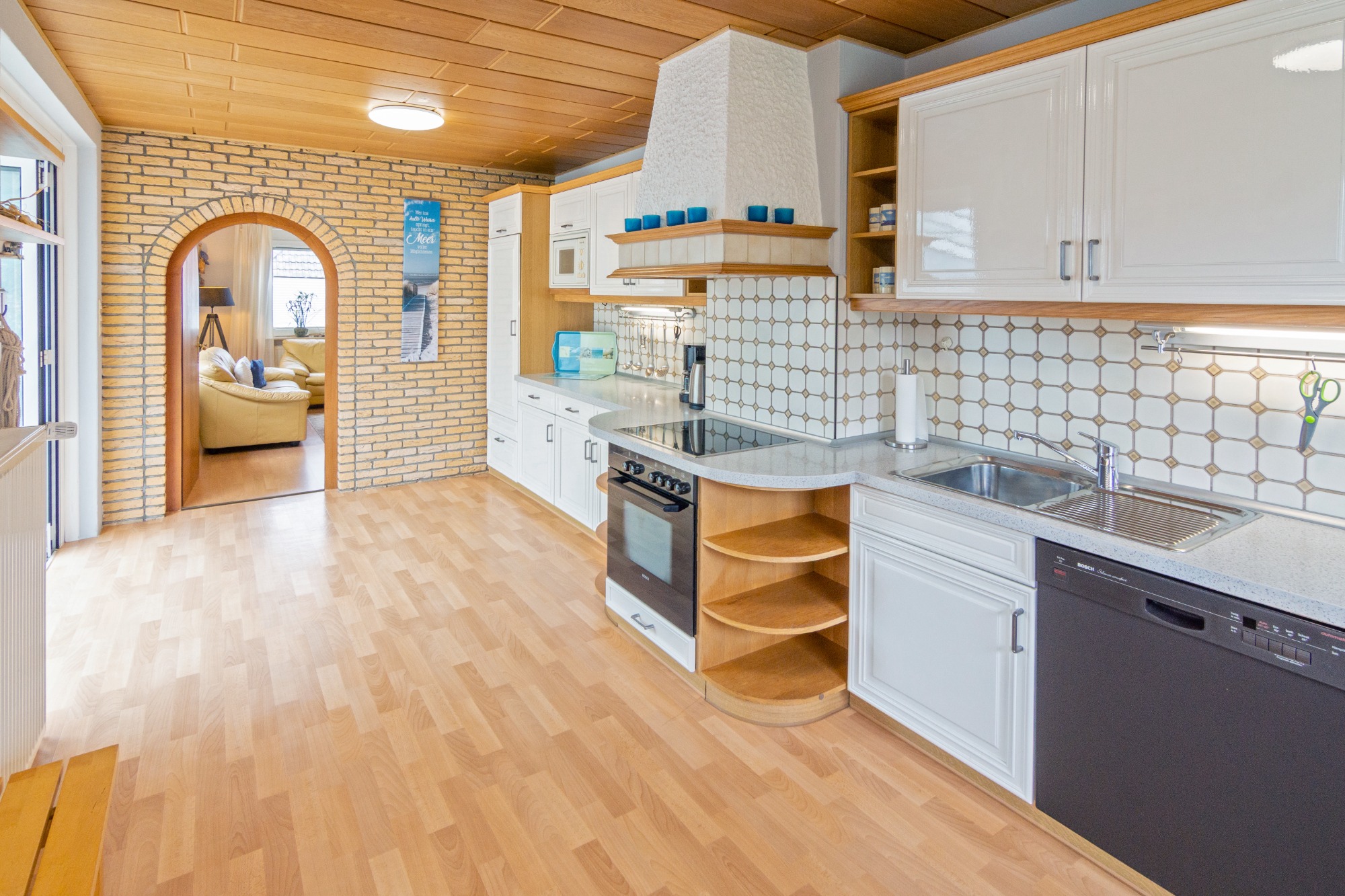Die große, helle Küche lässt keine Wünsche offen. Sie ist ist mit allem ausgestattet, was zu einem erholsamen Urlaub gehört: Spülmaschine, Kaffeemaschine, zusätzlich eine Senseo-Kaffemaschine, Mikrowelle, Wasserkocher, Toaster, Eierkocher und Kühlgefrierkombination. Die Waschmaschine und Trockner im Haus gegen Gebühr vorhanden.